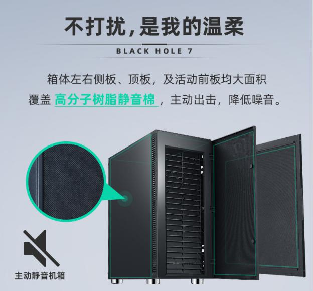 先马静音机箱家族静音力作黑洞7,可以同时满足散热和静音两种需求。想要自己主机超级静音又担心散热不行的朋友们终于有了目标啦。