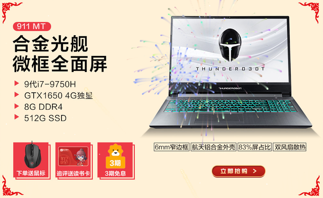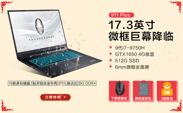 2020新年来临,正在为亲朋好友挑选礼物而发愁?,为你精选雷神苏宁旗舰店多款新年战机好礼,款款兼具格调品味和实用价值,让对方满意还能记住你的心意!即日起到1月17日,逛雷神苏宁旗舰店,下单即可享受爆款直降千元、潮酷游戏鼠标、晒单送雷神双肩包、600元减免神券、限量满50减25元神券、购机三期免息、晒单返30元云钻等多重大礼,为你传递新年福气!