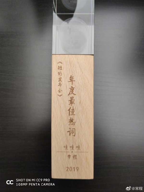 今日常程在微博上晒出一组照片,其中两张是《短的发布会》为常程办法的奖杯:年度最佳热词,哇哇哇——常程。